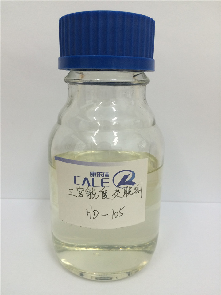 使用方法 添加量通常為乳液固含量的1~3%,乳液pH值在8~9.5時加入最佳,切忌在酸性介質(zhì)中使用。本品主要與乳液中的羧基發(fā)生交聯(lián)反應(yīng),一般室溫使用,60~80℃下烘烤效果更佳??蛻魬?yīng)根據(jù)自身工藝需要進(jìn)行測試確定。 本品屬于雙組份型交聯(lián)劑,一旦加入到體系后建議在8~12小時內(nèi)使用完畢,客戶最好根據(jù)實(shí)際使用溫度和配伍樹脂體系自行測試其適用期。同時本品有輕微刺激性氨味,要小心處置并避免直接與皮膚和眼睛接觸,盡量在通風(fēng)環(huán)境中使用。噴涂時要特別注意口、鼻吸入,應(yīng)戴專用口罩,手套,防護(hù)服操作。